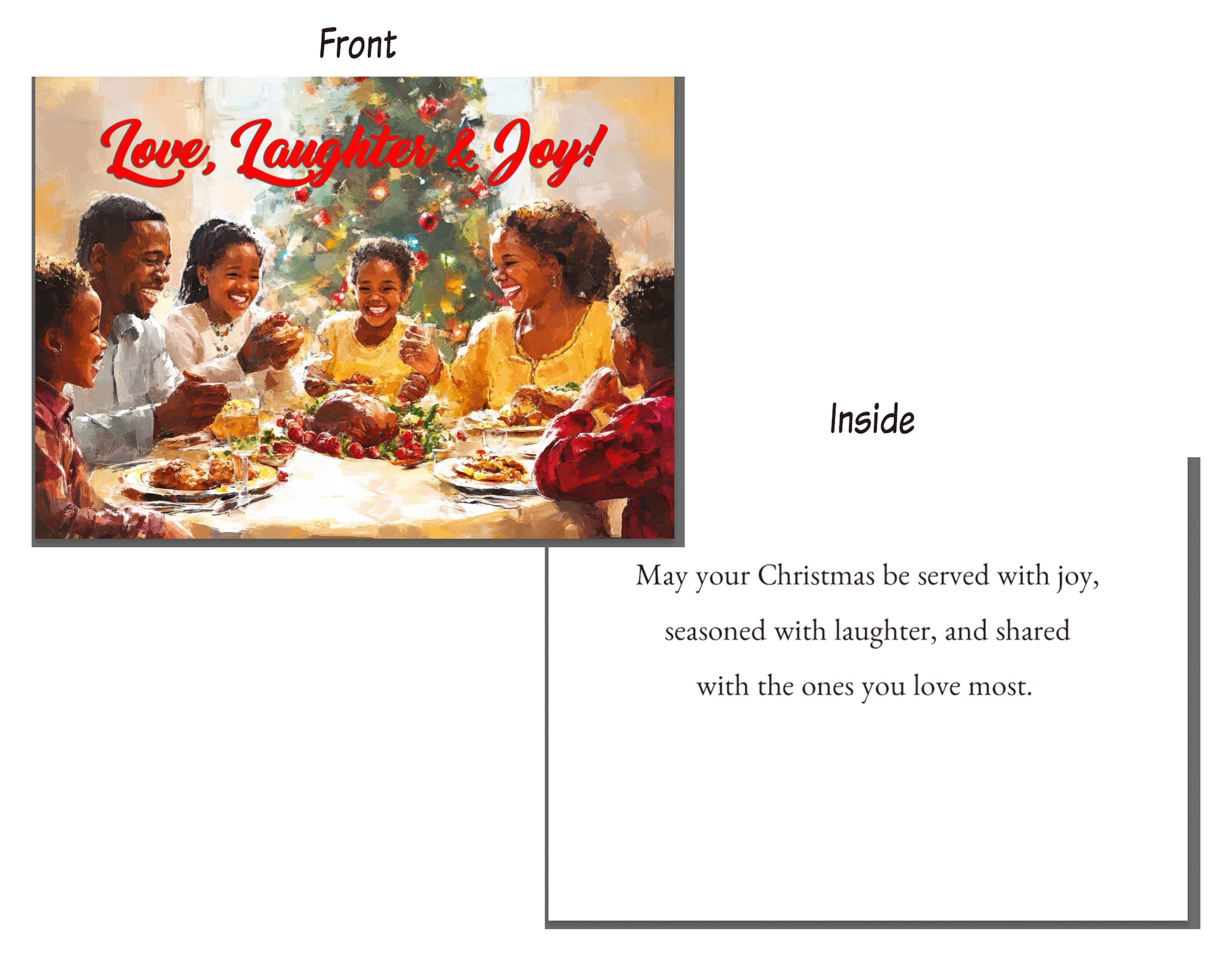 Inside, you’ll find the greeting: "May your Christmas be served with joy, seasoned with laughter, and shared with the ones you love most."